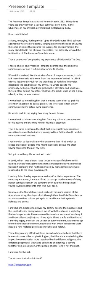 The Presence Template mentioned above was my way back in 2015 of writing, trying to describe events that have actually happened in me, in my living experience. Not until a Sufi friend on Facebook recognised in my writings something that he recognised as tifl al-maani (child of the heart), has my destiny clarified a little more.